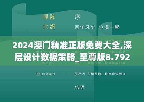 在这个大数据时代,精准的数据策略是"2024澳门精准正版免费大全"成功运营的关键。深层设计数据策略关注数据的收集、处理、分析和应用,旨在提供更加个性化、精准化的服务。