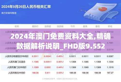 2024年,澳门特别行政区作为中国的两个特别行政区之一,其经济文化以花样繁盛、博彩业发达而闻名于世。随着全球信息时代的发展,众多网民越来越关注澳门的资料数据。这篇"2024年澳门免费资料大全,精确数据解析说明_FHD版9.552"涵盖了澳门的信息资源、旅游资源、经济数据分析以及人文特色等内容,为广大读者提供一个全方面的澳门资料库。同时,在数据严谨性和实用性的基础上,精确解析澳门2024年各领域情况,一同探索澳门的发展变化。