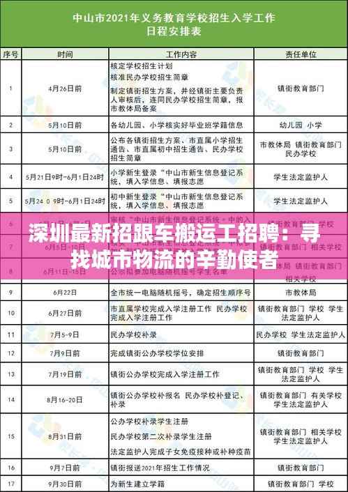 深圳最新招跟车搬运工招聘:寻找城市物流的辛勤使者