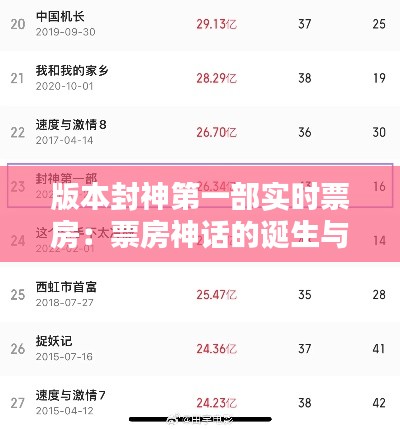 标题:版本封神第一部实时票房:票房神话的诞生与传播