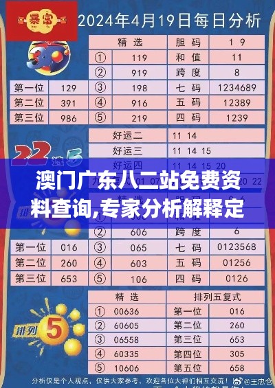 在数字化时代,信息查询成为了人们日常生活不可或缺的一部分。特别是在澳门广东八二站,一个专门提供免费资料查询的平台,为用户提供了便捷的服务。这个平台的建立,是为了满足人们对各类专业知识、法律法规、行业动态等信息的需求。用户只需登录该网站,就能免费获取到所需要的资料,无论是个人还是企业,都可以从中受益。