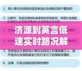 济源到英言的高速公路全长约100公里,途经多个县区,连接济源市和英言县。该路段沿线风景秀丽,但同时也存在一些路况问题,如拥堵、施工等。以下是对该路段低速实时路况的详细分析。