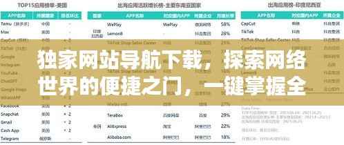 随着互联网的飞速发展,我们在享受信息时代的便利时,也常常遇到一些问题,如寻找所需网站困难、网络安全隐患等,一个“独家网站导航下载地址”便能为我们带来极大的帮助,本文将为您详细介绍这种导航工具的特点、优势以及如何安全下载使用。