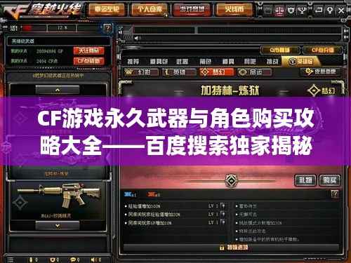 通过百度,您可以找到许多关于Cf游戏中永久武器和角色购买的攻略和信息,在购买时,请务必选择官方渠道或信誉良好的第三方平台,并注意以上几点,希望本文能为您在Cf游戏中购买永久武器和角色提供帮助,祝您游戏愉快!