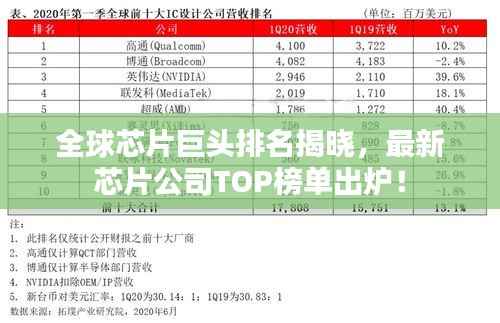 随着科技的飞速发展,芯片行业日新月异,各大公司竞相创新,争夺市场,本文将为您呈现芯片公司的最新排名,带您了解全球顶尖的芯片企业。