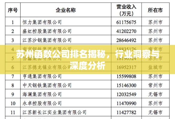 随着信息技术的迅猛发展,苏州的函数公司如雨后春笋般崭露头角,本文将为您介绍苏州函数公司的排名及相关行业洞察。
