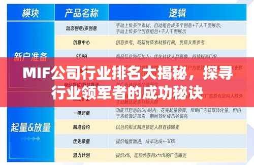 随着科技的飞速发展和全球化趋势的推进,MIF(移动金融)公司作为新兴的金融科技公司,正逐渐崭露头角,本文将为您揭示MIF公司的排名及其背后的成功秘诀。