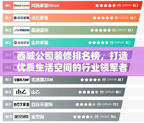 在当今社会,装修行业日益繁荣,人们对于生活品质的追求不断提高,西城公司作为装修行业的佼佼者,一直在为广大业主提供优质的装修服务,本文将介绍西城公司在装修行业的排名及其优质服务,展示其打造优质生活空间的实力。