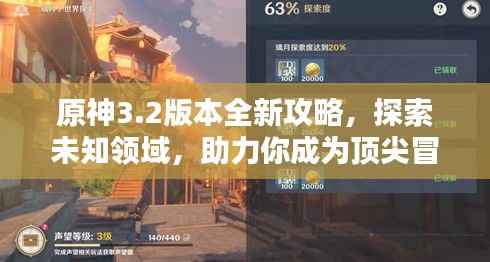 随着原神游戏的不断更新,新的版本3.2已经与玩家们见面,在这个版本中,新的角色、新的任务、新的装备和新的玩法纷纷亮相,让玩家们眼前一亮,本文将为大家带来原神3.2版本的最新卓越攻略,帮助大家更好地探索这个神秘的世界,成为真正的冒险家!
