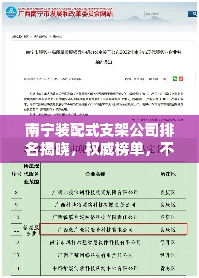 随着建筑行业的不断发展,装配式支架作为一种高效、环保的建筑方式,逐渐受到广泛关注,南宁作为广西壮族自治区的首府,其在装配式支架领域的发展也日渐壮大,本文将介绍南宁装配式支架公司的排名,以便为需要了解该领域情况的人士提供参考。