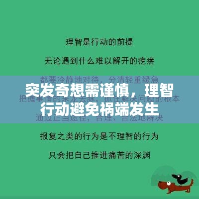 不要因为突发奇想而轻易行动,理智对待每一个想法和决策,在追求创新和发展的同时,我们要关注风险管理和稳定需求,通过冷静分析、充分调研、征求意见和风险评估等方式,平衡突发奇想与理智行动的关系,只有这样,我们才能在生活中做出明智的选择,避免因为一时冲动而引发不必要的麻烦和祸端,让我们用理智引领行动,共创美好未来。