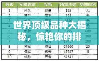 在多元化的世界中,各种品种以其卓越的品质、独特的魅力以及超凡的价值,赢得了全球消费者的青睐和追捧,本文将从多个领域,为大家揭示世界顶级品种的排名。