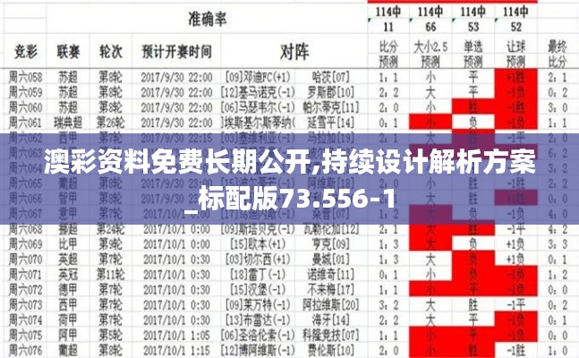 在当今信息爆炸的时代,获取澳彩资料已成为广大彩民朋友们的迫切需求。澳彩资料免费长期公开的意义不仅仅是提供信息服务,更是让彩民更加深入了解彩票市场、掌握投注技巧、规避风险的有力助手。文章的主题就是围绕“澳彩资料免费长期公开,持续设计解析方案_标配版73.556-1”展开阐述,旨在提供给广大彩民更加详细、精准的澳彩资料,并针对现有的标配版73.556-1进行深度解析。