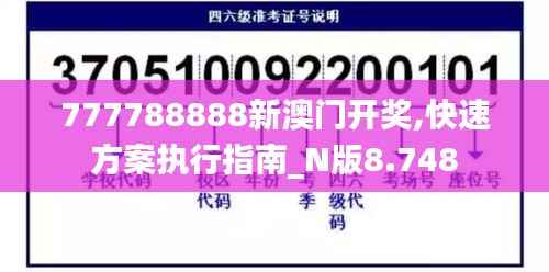 新澳门,作为全球著名的博彩娱乐中心,一直以其公平公正的开奖方式赢得了众多玩家的信任和喜爱。777788888作为新澳门的一项重要开奖数字,吸引了无数玩家的关注和参与。本文将为您详细介绍新澳门777788888开奖的快速方案执行指南,帮助您更加高效地进行开奖活动。