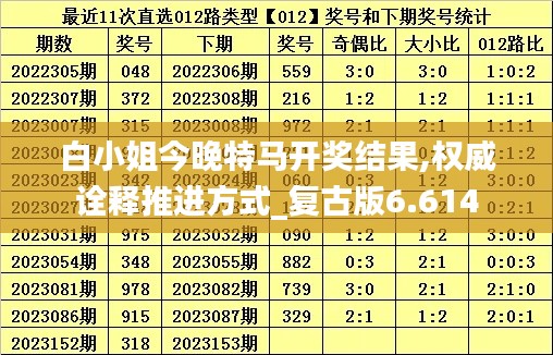 此外,复古版6.614特马开奖结果的公布,也是对彩票开奖体系的一次完善和升级。通过引入权威诠释推进方式,确保了开奖结果的公正性和准确性,为彩票行业的发展提供了坚实的基础。这也是为何白小姐特马今晚的开奖结果备受瞩目的原因,因为它不仅是一个开奖活动,更是一次文化和历史的传承。