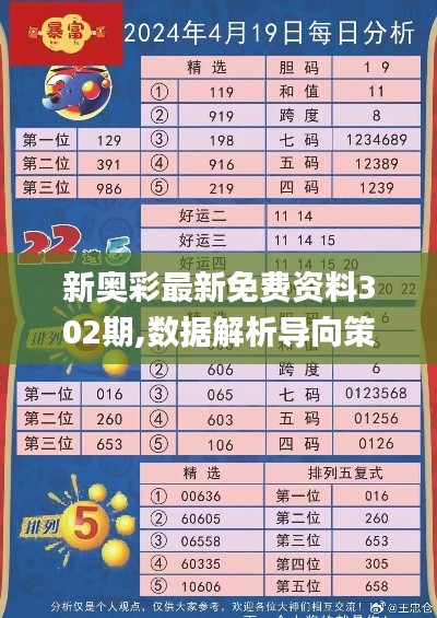 数据分析是彩票投注过程中至关重要的一环。通过对历史数据的深入挖掘和研究,彩民可以发现一些潜在的规律和趋势,从而为选号提供有力的依据。新奥彩免费资料302期中的数据解析部分,正是为了帮助彩民更好地把握这些规律,提高中奖几率。