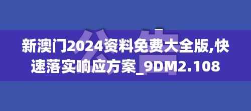 新澳门2024是一个备受期待的年度事件,其相关资料和信息集合被整理成一份全面的免费大全书。这份资料免费大全版是针对2024年澳门一体化发展计划的一个响应方案,旨在快速应对新的城市发展需求和挑战。下面让我们一起深入了解“新澳门2024资料免费大全版”的各个方面。